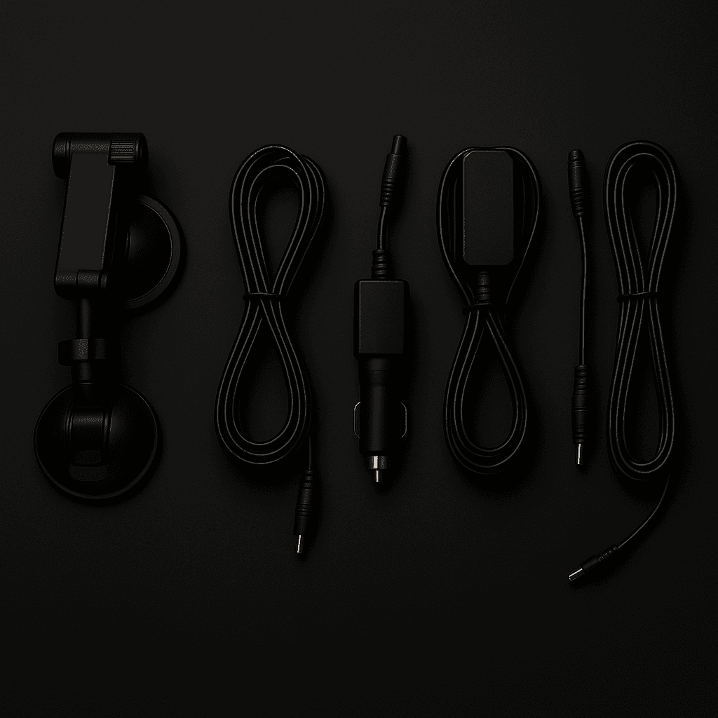 Includes a secure bracket for 7-inch display mounting, long-range extension cables for dual thermal cameras, and a 12V cigarette-lighter adapter for seamless in-vehicle power. Also features CVBS output cables for non-AI displays and a manual switch line for real-time front/rear camera toggling—built for adaptable system integration.